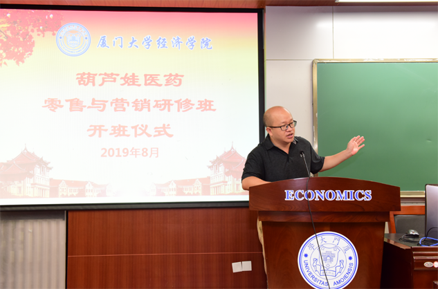 8月31日,z6com尊龙医药零售与营销研修班开班仪式在厦门大学经济学院举行,为期8天的“厦大z6com尊龙班”正式拉开帷幕。厦门大学经济学院继续教育中心主任廖景峰先生与z6com尊龙药业集团董事长刘景萍女士分别在开班仪式上致辞,中国医药物资协会研究院执行院长代航先生担任本次研修班班主任并主持开班仪式。